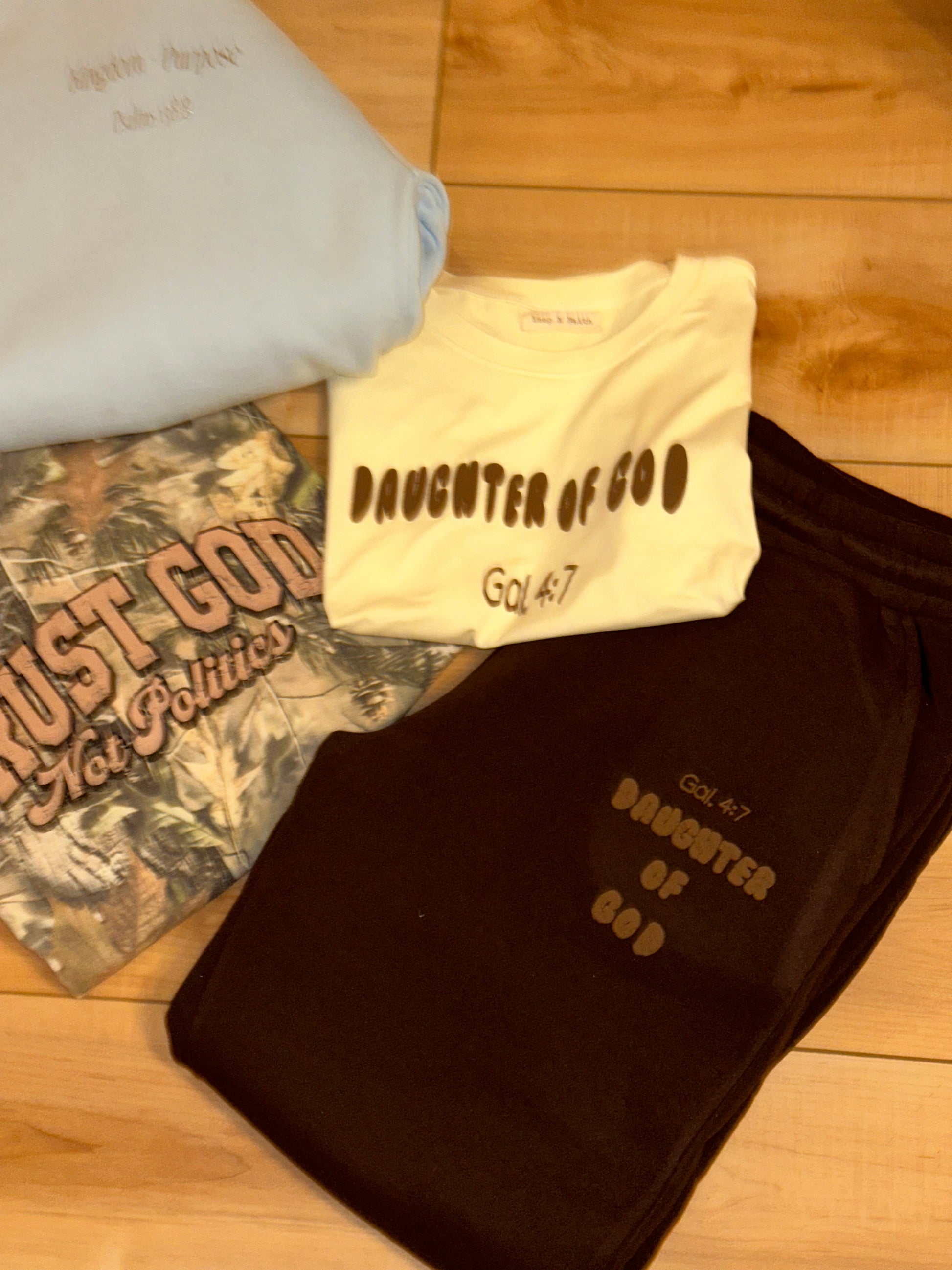 A soft, lightweight Christian sweats designed to remind you of your true identity a beautiful, powerful Daughter of God.
